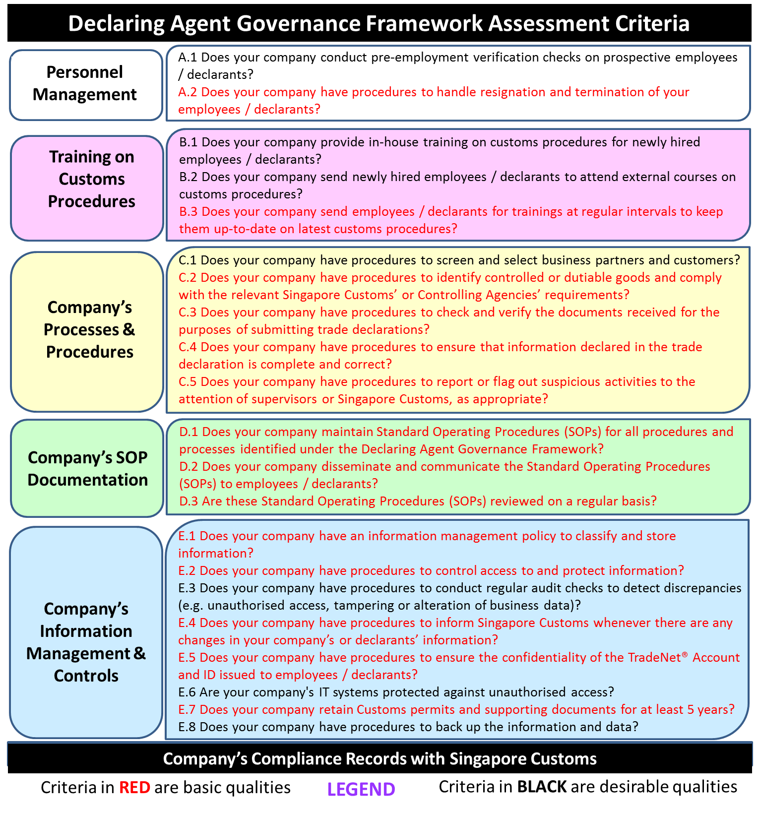 A DA must minimally possess the basic qualities (shown in red in the illustration) and should take pro-active steps to ensure compliance if they have self-assessed to be lacking in those areas. The desirable qualities (shown in black) are areas that DAs should also ideally achieve.
